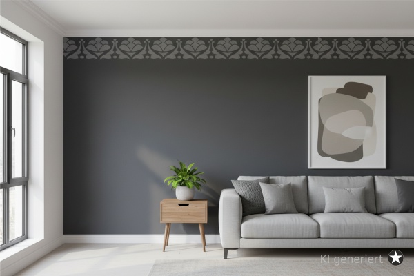 Die Kategorie unserer Classic Bordüren steht für zeitlose Ästhetik. Dieses Motiv besticht durch harmonische Linienführungen, die an antike Friese und herrschaftliche Dekorationen erinnern. Dank der durchdachten Rapport-Markierungen lässt sich das Muster unendlich fortführen, sodass Sie nahtlose Bordüren über die gesamte Wandlänge erstellen können.Warum eine Schablone vom Schablonenprofi?