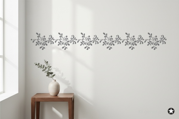 Verschönern Sie Ihre Wohnräume mit dem Charme vergangener Epochen. Unsere Classic Bordüren Schablonen bringen stilvolle Ornamente und klassische Symmetrie direkt an Ihre Wände. Ob im Wohnzimmer, Flur oder Schlafzimmer – diese hochwertige Wandschablone ist das ideale Werkzeug für eine edle Raumgestaltung im Handumdrehen.Verfügbare Motivgrößen (Breite × Höhe):