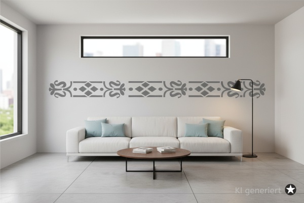 Verschönern Sie Ihre Wohnräume mit dem Charme vergangener Epochen. Unsere Classic Bordüren Schablonen bringen stilvolle Ornamente und klassische Symmetrie direkt an Ihre Wände. Ob im Wohnzimmer, Flur oder Schlafzimmer – diese hochwertige Wandschablone ist das ideale Werkzeug für eine edle Raumgestaltung im Handumdrehen.Verfügbare Motivgrößen (Breite × Höhe):