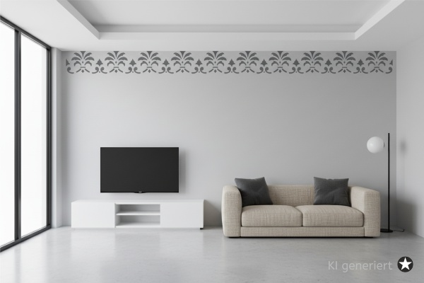 Verschönern Sie Ihre Wohnräume mit dem Charme vergangener Epochen. Unsere Classic Bordüren Schablonen bringen stilvolle Ornamente und klassische Symmetrie direkt an Ihre Wände. Ob im Wohnzimmer, Flur oder Schlafzimmer – diese hochwertige Wandschablone ist das ideale Werkzeug für eine edle Raumgestaltung im Handumdrehen.Verfügbare Motivgrößen (Breite × Höhe):