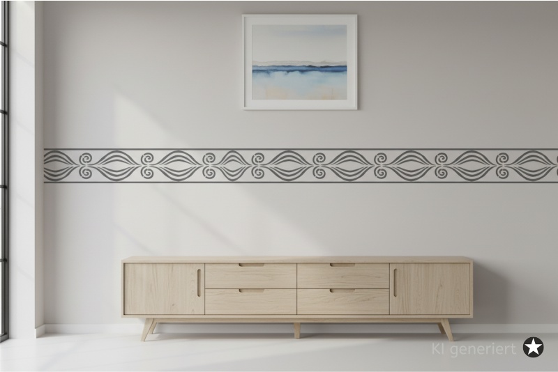 Die Kategorie unserer Classic Bordüren steht für zeitlose Ästhetik. Dieses Motiv besticht durch harmonische Linienführungen, die an antike Friese und herrschaftliche Dekorationen erinnern. Dank der durchdachten Rapport-Markierungen lässt sich das Muster unendlich fortführen, sodass Sie nahtlose Bordüren über die gesamte Wandlänge erstellen können.Warum eine Schablone vom Schablonenprofi?