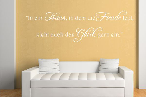 Wandschablone In ein Haus, in dem die Freude lebt, zieht auch das Glück gern ein.
